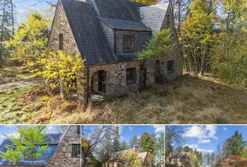 This property is a Tudor-style stone cottage, situated on a 1.9-acre plot with mature trees and a circular driveway that gives a sense of privacy. It has an elegant hipped roof, which adds character...